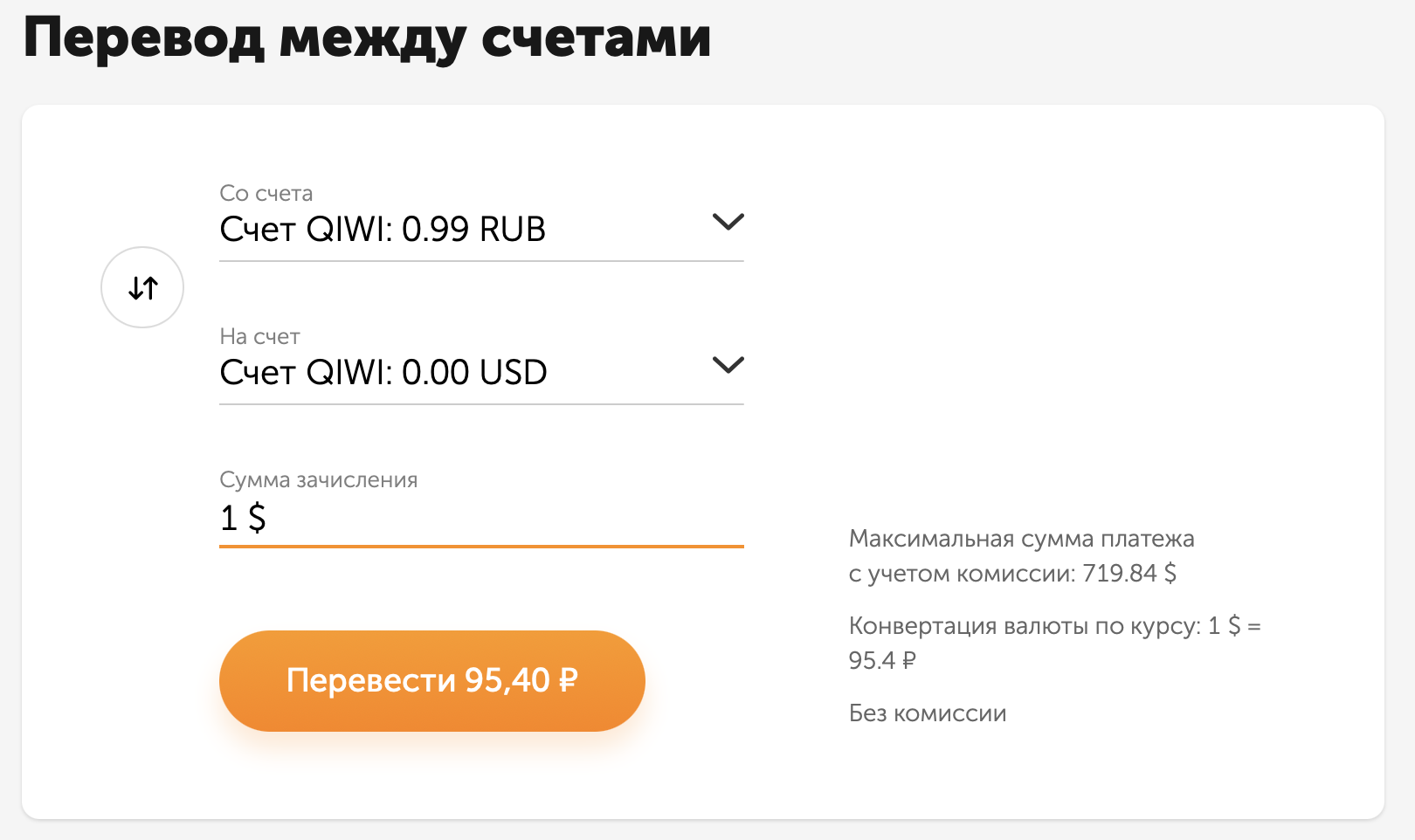 ПРИМЕР: 1 апреля курс ЦБ РФ 83.41, курс AliExpress 121.76, курс Qiwi 88.67! ВАЖНО: курс конвертации наиболее выгодный, когда работает ММВБ биржа (с 10 до 19 по МСК). При конвертации в выходные или вне работы биржи курс Qiwi все еще выгодный, но чуть хуже. ВАЖНО: при операциях с долларами действуют ровно те же лимиты, что и с рублями QIWI Кошелек