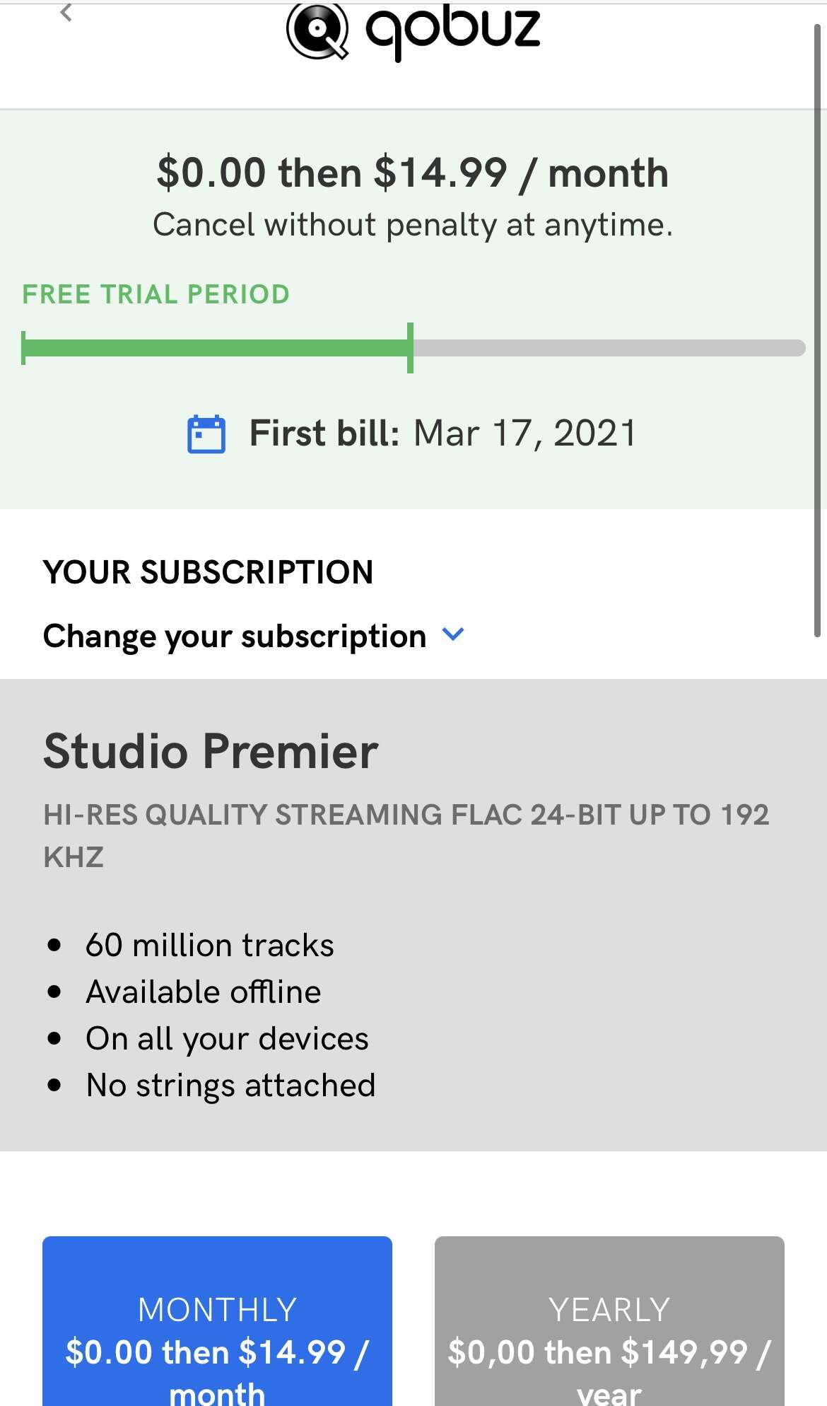 Без пробного платежа - никакого Hi-Fi не будет. MP3. В ROON такой акк. при подключении выдает ошибки доступа.