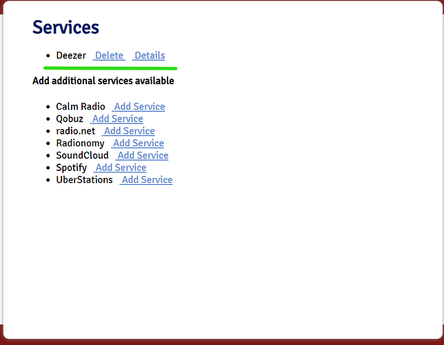 Если не ошибаюсь, если входите в ickStream и выбираете Deezer, то при выборе система и спросит логин-пароль учетки Deezer. Если все прошло удачно - Deezer отобразится в списке подключенных сервисов (как у меня на скриншоте).