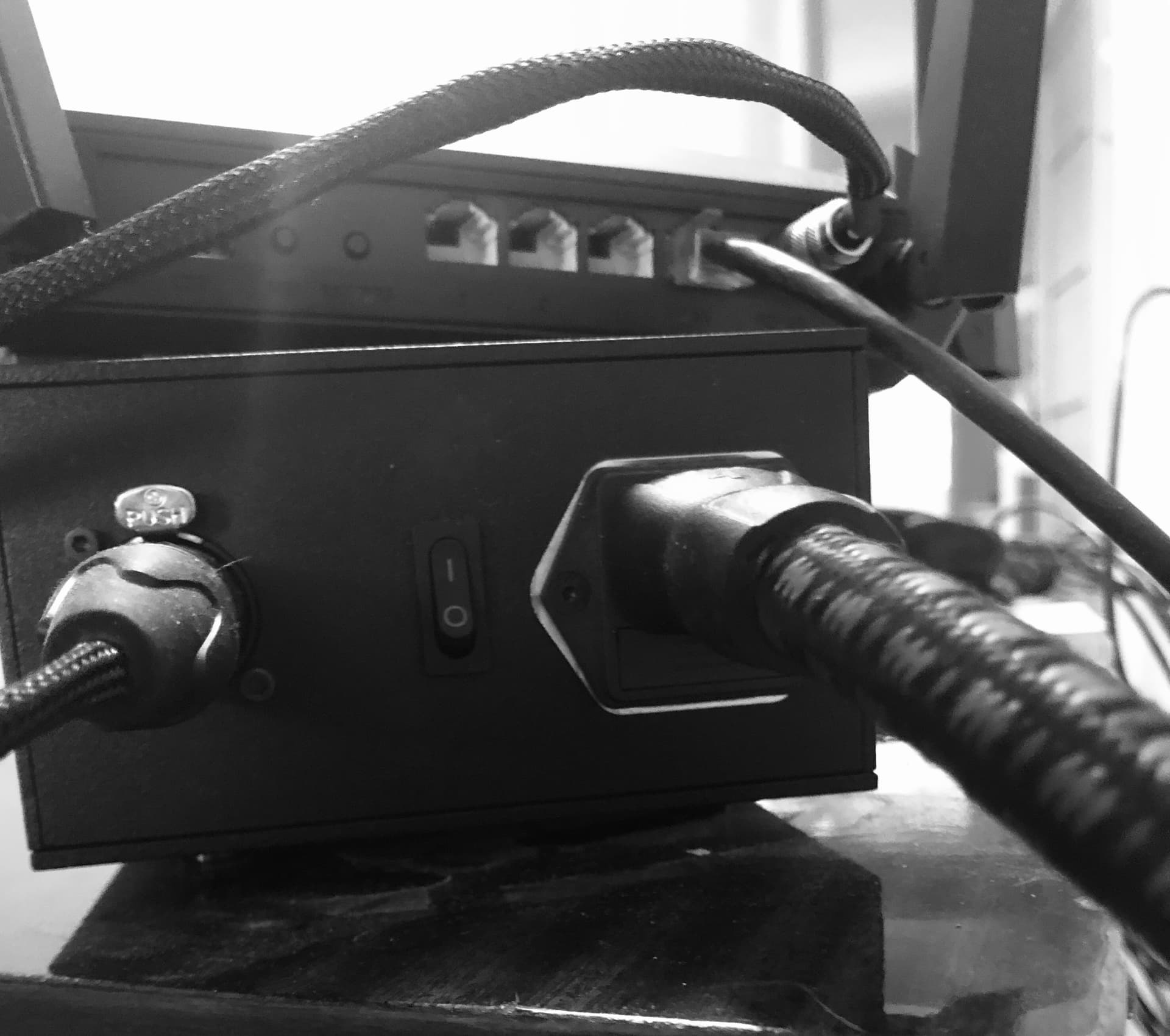 Главный роутер. Никаких оптик и свитчей. AQ NRG 4, вместо фильтра, временно, крайне длинная выделенка и БП, по роутеру закрывающий вопросы и открывающий «выше только звёзды». Ждем звезд